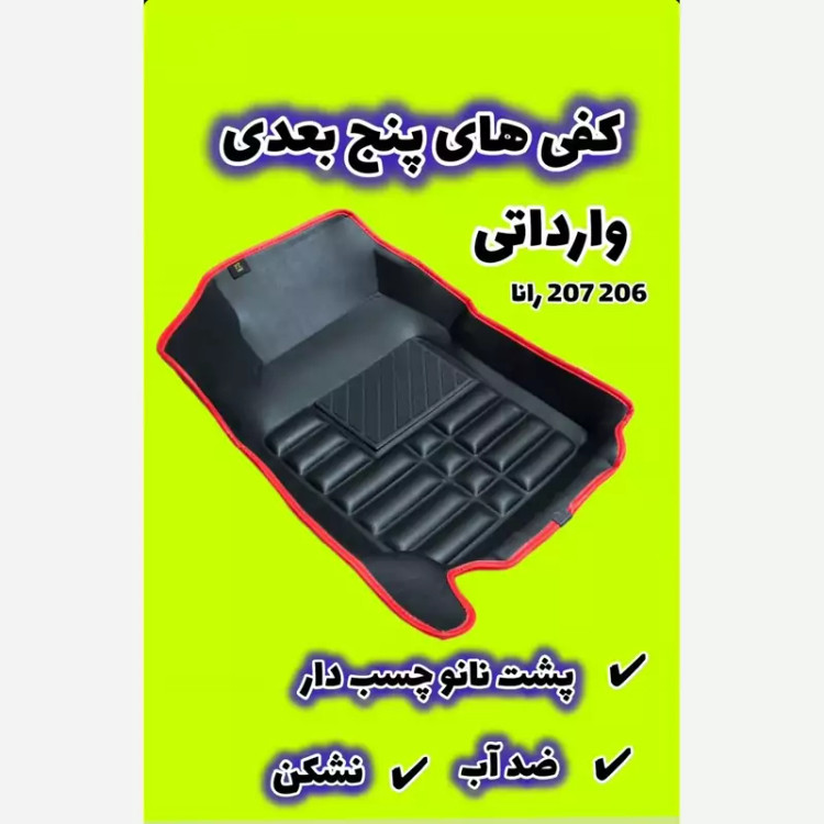 کفپوش5بعدی خودرومناسب برای206،207،راناوراناپلاس جنس نرم ونشکن قالب استاندارد پوشش حداکثری کف موکتی خودرو بدون دخالت درگارانتی
