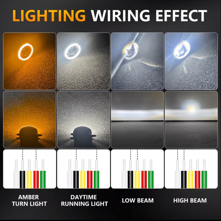 سایر توضیحات: شامل دو عدد پرژکتور اصلی سایز 4 اینچ بدنه فلزی کاملا ضدآب نوان 60 وات رنگ نور بالا و نور پایین رنگ نور سفید 6500 کلوین دارای دیلایت حلقه ای نور سفید دارای راهنما به رنگ نارنجی لامپ داخل ال ای دی چیپ CREE XHP50 نوردهی خطی عمق وسعت و زاویه نوردهی عالی