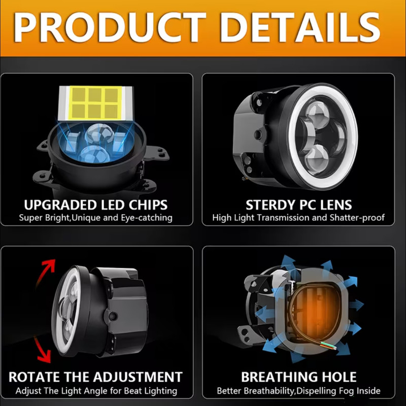 سایر توضیحات: شامل دو عدد پرژکتور اصلی سایز 4 اینچ بدنه فلزی کاملا ضدآب نوان 60 وات رنگ نور بالا و نور پایین رنگ نور سفید 6500 کلوین دارای دیلایت حلقه ای نور سفید دارای راهنما به رنگ نارنجی لامپ داخل ال ای دی چیپ CREE XHP50 نوردهی خطی عمق وسعت و زاویه نوردهی عالی