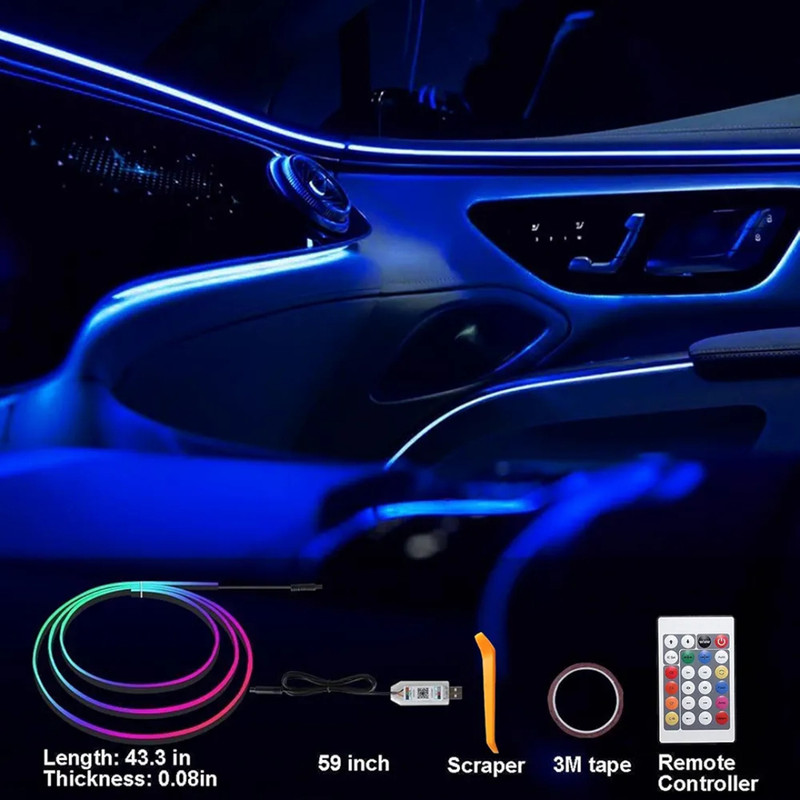 الوایر فیبر نوری شامل 2 قطعه الوایر جهت نصب روی درب ها و داشبورد خودرو می باشد، این محصول داخل درز قسمت های مختلف داخل کابین خودرو بدون نیاز به چسبکاری بسته به سلیقه قرار داده می شود.
