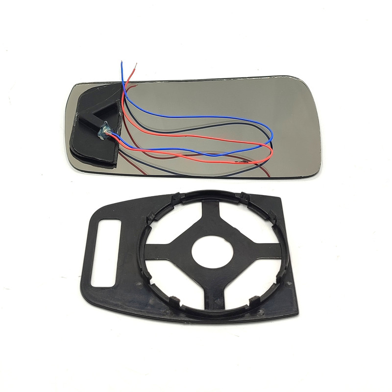 دو عدد شیشه آینه بغل مناسب برای سمند دارای راهنمای مخفی به رنگ نارنجی شیشه ها استاندارد بدون هیچگونه موج یا خط و خش کاربرد تزئینی و ایمنی