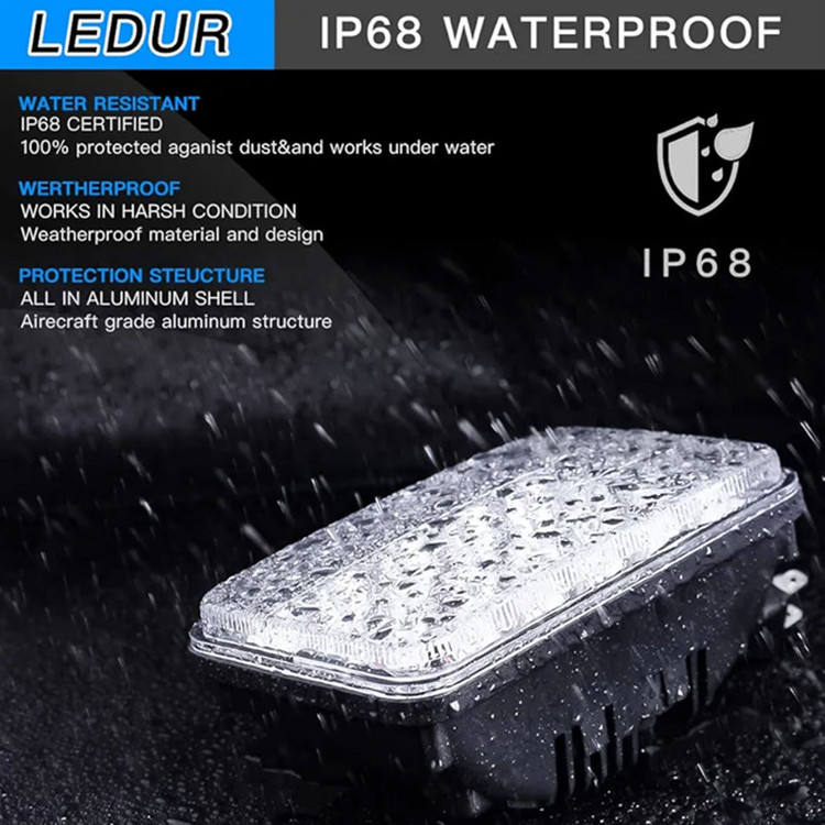 سایر توضیحات: تعداد ۲ عدد مخصوص خودروهای آفرودی با چراغ چهارگوش توان 55 وات شامل نور بالا، نور پایین و دیلایت ولتاژ 9 – 32 ولت 6000 لومنس کاملا ضدآب دارای گواهی IP68 دارای گواهی CE